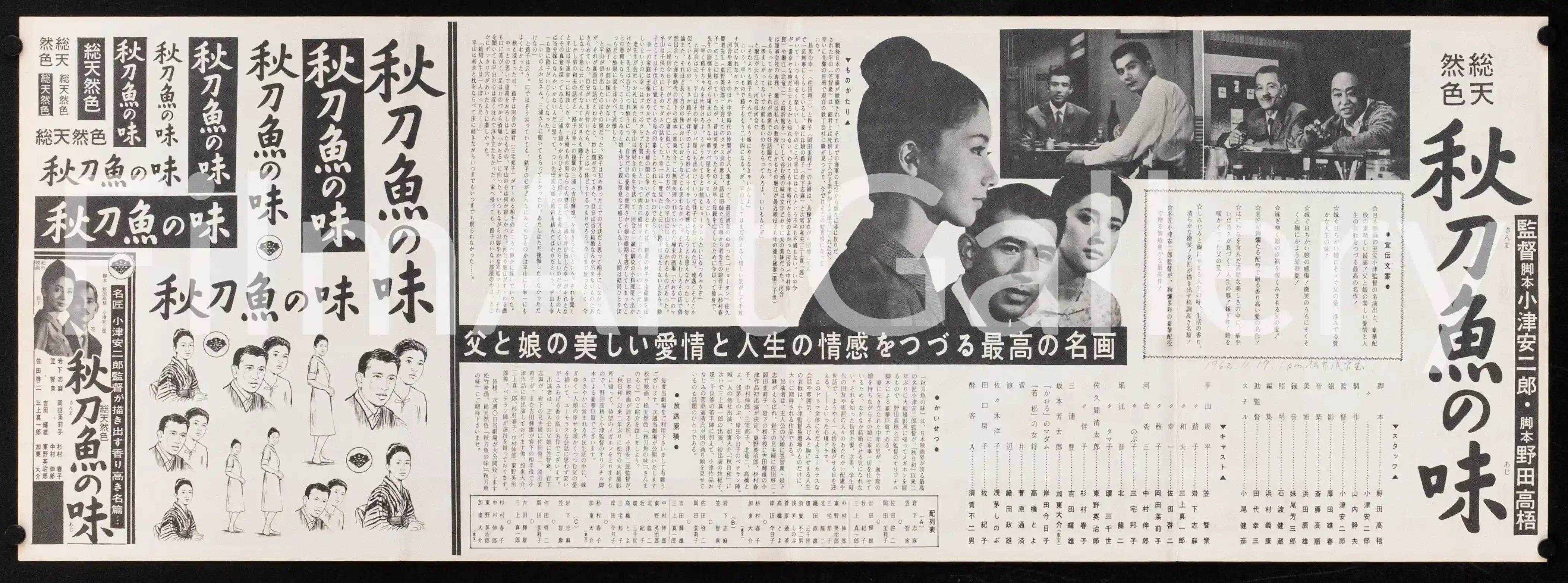 Double-sided Japanese press sheet poster for Yasujiro Ozu's final film (actual size is 10.25" x 28.75" inches)